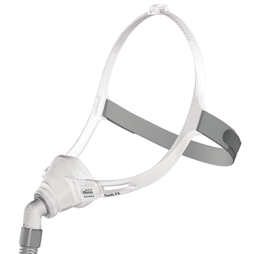 The ResMed Swift FX Nano combines the freedom of a nasal pillow mask with the comfort and seal of a traditional nasal mask. Its minimal design, flexible headgear, and dual-wall cushion provide an adaptive fit and quiet, effective therapy.