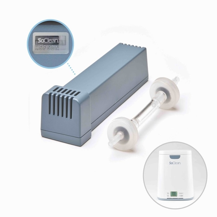 The SoClean 2 Cartridge Filter Kit includes one replacement filter with attached O-ring and one replacement check valve. It is designed to be used with SoClean 2 machines that have "1200SC" in the serial number. The kit ensures safe and effective CPAP equipment sanitization.